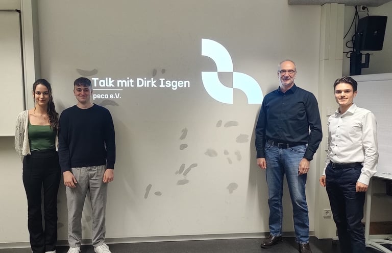 Von der Schilderung seiner eigenen Laufbahn, nötigen Voraussetzungen für Führungsrollen und der Bedeutung von Unterstützern bis zum Umgang mit schwierigen Situationen erklärte Herr Isgen seine Sicht auf Karriere in der Autoindustrie. Dabei ging es auch um Themen wie Perspektivwechsel, Auslandseinsätze und der wichtigen Rolle von Fachwissen in Führungspositionen.