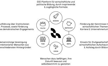 Unser Ziel ist eine bewusste und selbstbestimmte gesellschaftliche Teilhabe für alle Menschen, insbesondere in Wirtschaft und Politik. Wir sind überzeugt, dass Wissen in diesen Bereichen der Schlüssel zur Erschließung von gesellschaftlichen Potenzialen ist, weil Wirtschaft und Politik stets zusammengedacht werden muss für eine funktionierende Gesellschaft. Als Plattform im DACH-Raum ermöglichen wir deshalb den niederschwelligen Zugang zu inspirierenden Bildungsformaten die Verständnis für wirtschaftliche und politische Themen schaffen.